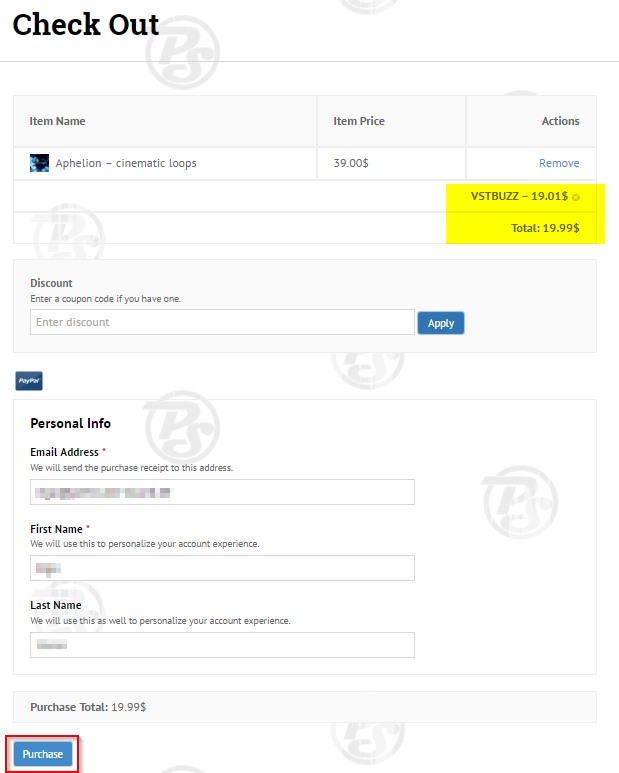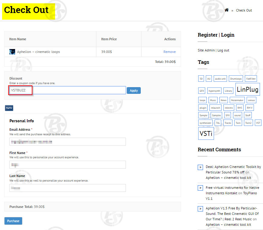 enter your personal discount code into the text field shown in fig2 and click the “Apply” button. You’ll see your discount immediately after clicking apply.(example Fig 3)
